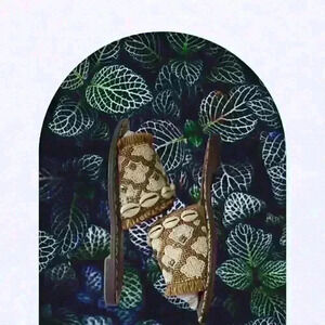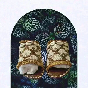 • Pattern Beaded Wide Strap Slide Sandal