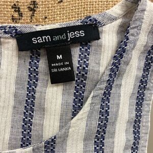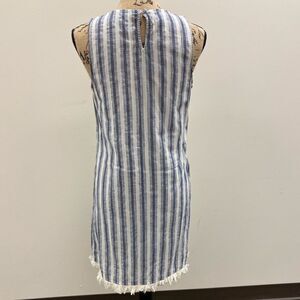 Like new Sam and Jess blue and white striped cotton sleeveless bohemian tasseled sheath mini dress. EUC, great shape, size medium, cotton, tasseled hem, back zip. See pictures for details.