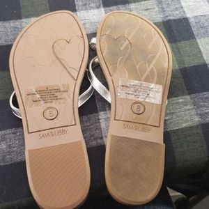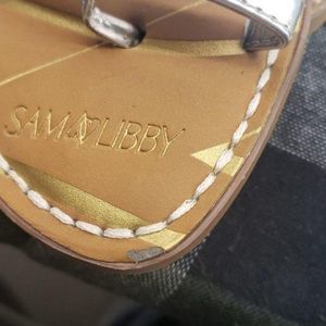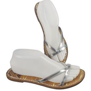 Sam and Libby Silver Thong Low Heel Snakeskin Sandals Flip Flops Size 8
