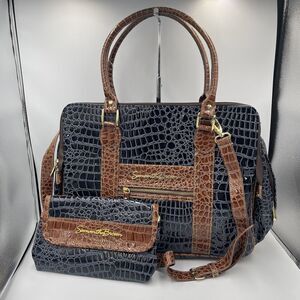 Samantha Brown 2 PC Luggage Weekender Carry On Computer Bag Travel Blue Brn Croc