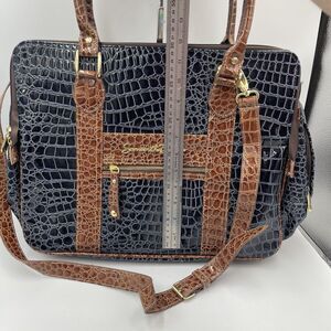Samantha Brown Luggage Weekender Carry On Computer Bag Travel Blue Brown Croc