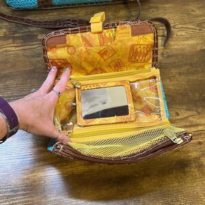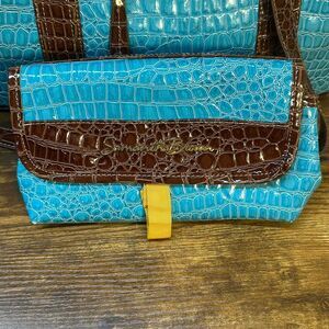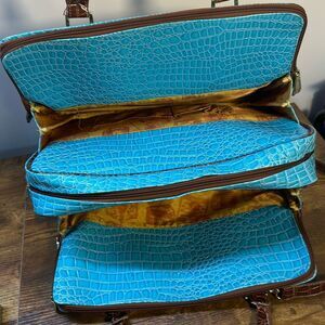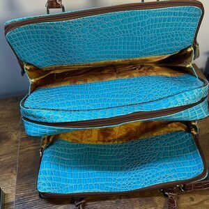 Samantha Brown Blue Croc Embossed Accents Tote Travel Bag Carry On Purse Handbag Pocketbook with Makeup Bag