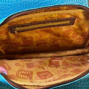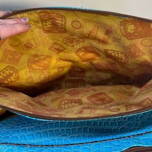 Samantha Brown Blue Croc Embossed Accents Tote Travel Bag Carry On Purse Handbag