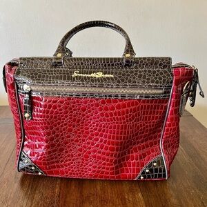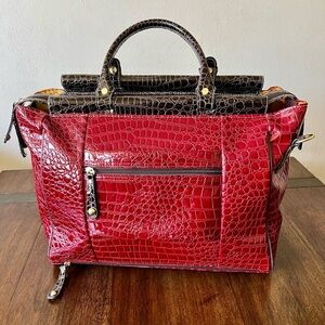 👜 Samantha Brown Burgundy Croco Embossed Overnight Travel Bag 12.5”H x 14”W