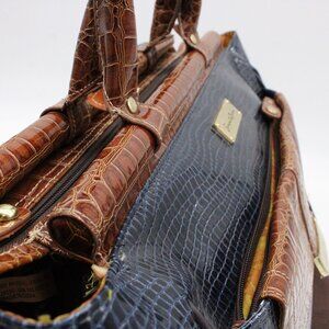 Samantha Brown Dowel Travel Bag Croc Embossed BLUE Brown Weekender Carry On VTG