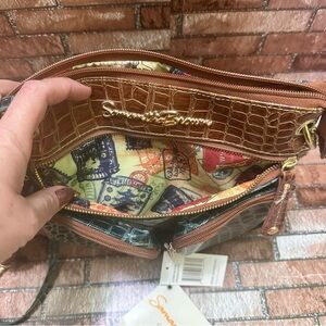 Samantha Brown Crossbody bag Elevate your style with the crocodile embossed bag. Featuring a chic brown and green design, this bag is perfect for any occasion. Experience luxury and functionality with every use.New w/Tags