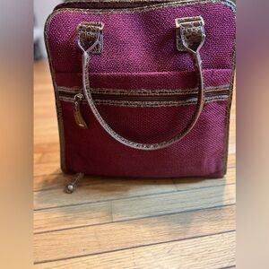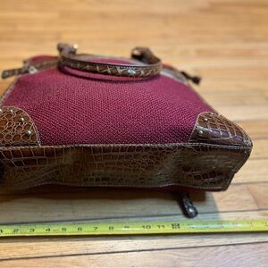 Samantha Brown Purse Overnight Tote Burgundy Woven Croc Snakeskin Print