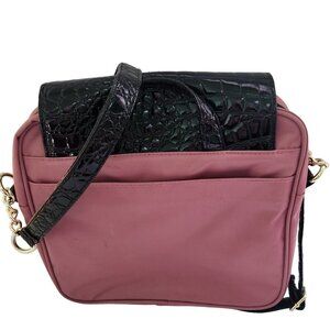 Samantha Brown RFID Protected Crossbody Purse Travel Dusty Rose. 10"x10"x2", Black Croc Details, Croc And Gold Chain Crossbody Strap, Top Handle, Snap And Zip Closure, Zip Pockets, Logo Plaque, Logo Interior, Retail $78. Excellent Pre-Owned Condition