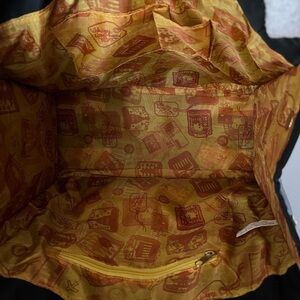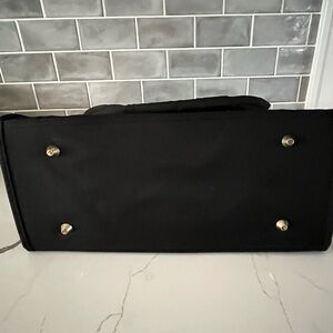 Samantha Brown Tote Purse Bag Black Nylon Travel Handbag Gold Fabric Interior