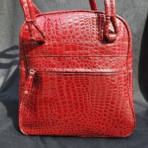 Samantha Brown Travel Bag Carry On Croc Embossed Red Weekender Handles 15x14x9"