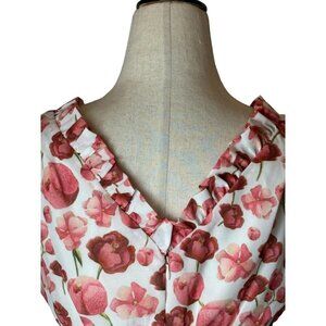 Samantha Sipos Ivory And Red Strawberry Floral Print Ruffle Midi Dress Size M