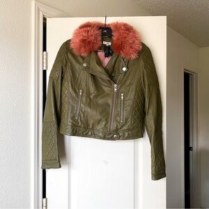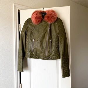Samantha Sipos Jacket Faux Fur Biker Leather Moto Buttery Olive Rose XS GUC