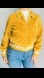 Pre-owned, very stylish, XS mustard yellow teddy bomber jacket. Features a zip front closure, two sheep leather flap pockets, and ribbed cuffs and hem with white stripes. The jacket is made from a plush, fuzzy genuine shearling fur.