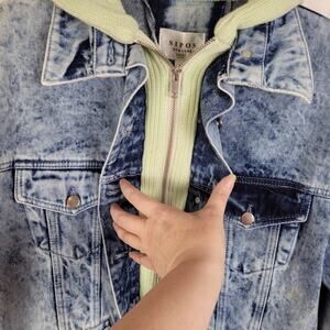 Samantha Sipos Zinna Acid Wash Hooded Denim Jacket Size Small 90s retro grunge