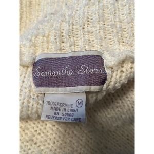 Samantha Starr Womens Sweater Cardigan Open Front Shawl Collar Knit Cream Medium