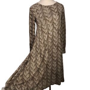 Samantha Sung Dress Brown Cable Knit Print Hand Painted Wool Silk Blend