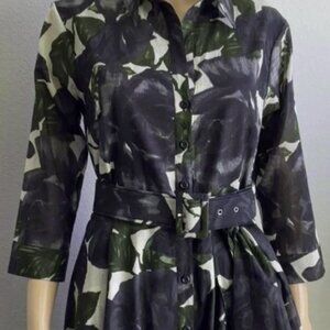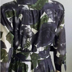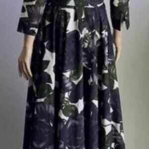 Worn ONCE!! The Women's Long Dress with Two Belts and Head Scarf by Samantha Sung is a stylish and versatile piece perfect for various occasions such as travel, parties, or casual outings. The dress features a beautiful black floral pattern on a slip dress style, with 3/4 sleeves and a long length. It comes with two belts and a head scarf, adding a touch of flair to the design. Made of nylon, this size 6 dress is perfect for women looking for a fashionable and comfortable outfit with a unique floral theme and convenient pockets.