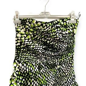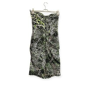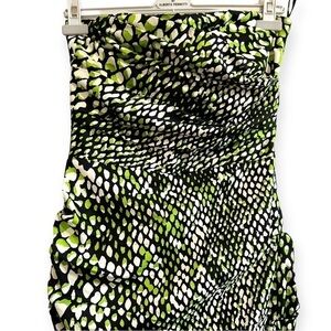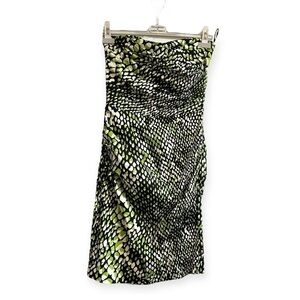 Samantha Sung Strapless Annette mini Dress in Green/Black Crocco print