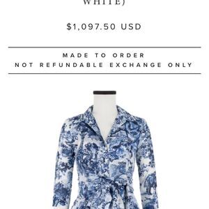 Gorgeous! Cotton and spandex. Shirt collar, 3/4 sleeve. Matching sash Belt. Each piece is dyed and subject to variation. This dress retails for $1100. No holes or stains. Stand out and your next event. You will get so many compliments. Imported.