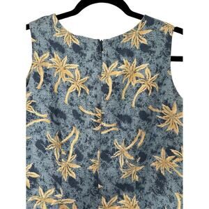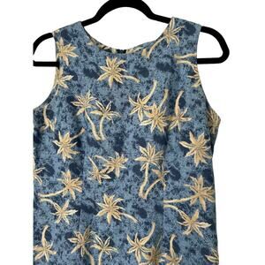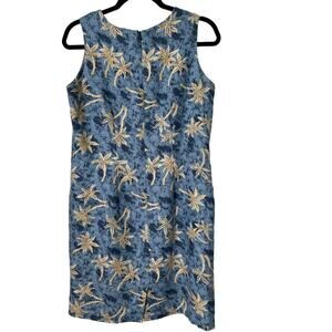 Samantha Taylor Dress Women's Size 8P Blue Coconut Tree Sleeveless Linen Sheath