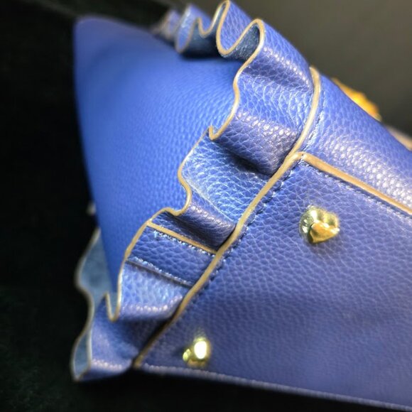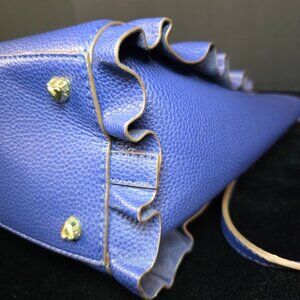 Great pre-loved condition. There are two call-outs that I have taken photos of (see last 2 pics). Color is Blue with Gold hardware.
