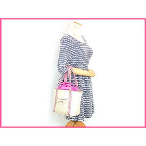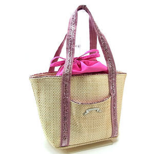 Samantha Vega Logo Plate Tote Basket Shoulder Bag Natural x Pink x Silver