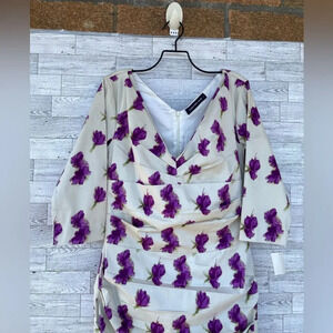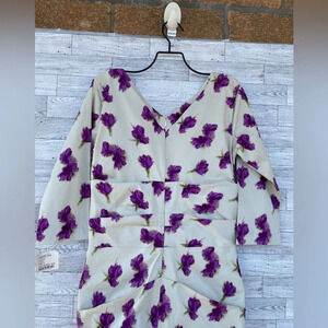 Cream color with violet roses print ruched style rare have stretch