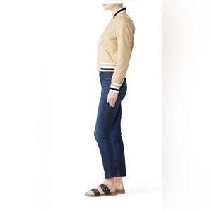 Varsity stripes and a slim fit distinguish this Samantha Sipos bomber jacket, perfect for in-between temps.
