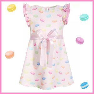 Samara Macaron Print Dress w/ Satin Ribbon