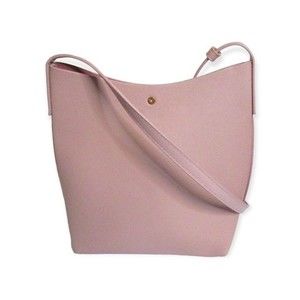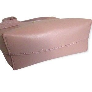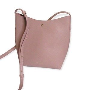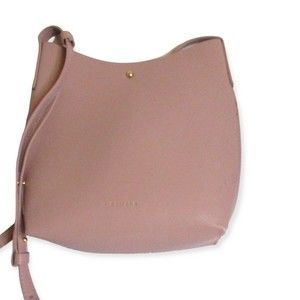 This is a Samara pink vegan leather crossbody bag. The color is stunning and it measures 8.5 x 7.15 x 3.25 with adjustable strap and one little notch closure and adjustable strap.