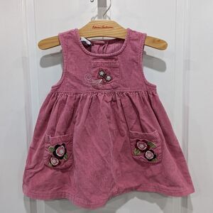SEO: 90s vintage girls dress Samara corduroy jumper fall dress floral applique butterfly embroidery back to school heirloom classic pink feminine retro baby toddler girl family photos church toddler 4 4T casual 1980s 1990s
