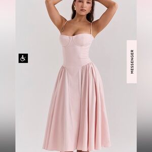 Very cute house of CB Samaria dress. Is wrinkled because it has been folded in the box for some time. New with tags, no stains, never worn, just needs to be steamed! This is a size medium with large cup (D-E). Copied listing, item was sold but had to cancel.