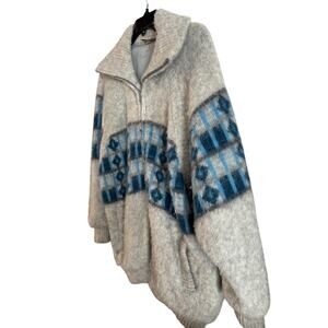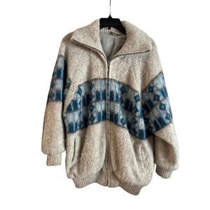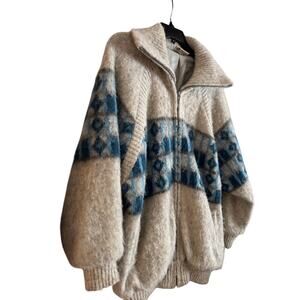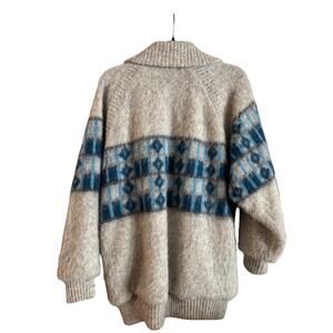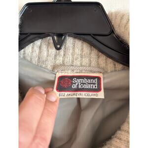 Samband of Iceland Womens Wool Fair Isle Sweater Cardigan M Gray Nordic Zip Up