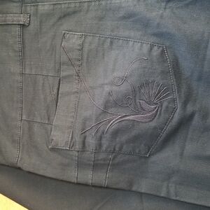 See photos for measurements and color clarification. Small snag at hem of one pant.