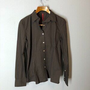 SameUnderneath, Chocolate brown, Size Large. NWOT. Beautiful button down with country western flair. Embroidery along the front and on the back. Long sleeve, pearl buttons with a pleated back. 100% organic cotton. This fabric is super soft. Shirt is in like new condition. No visible signs of wear or tear. See photos for measurements.