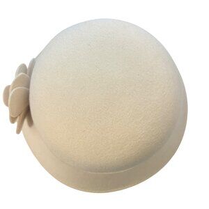 Samething Special 90s Cloche Hat Womens Wool Beige Flower Accent Vintage Style