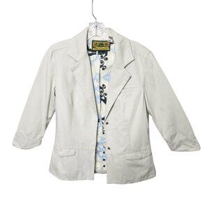 Sameunderneath Women’s Size Large Cream Bird Embroidered Blazer Jacket Bamboo Cotton Blend
