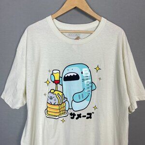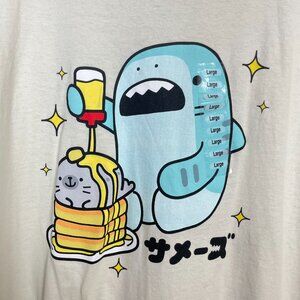 Samezu T-Shirt Shark Pancakes Seal Size Large Short Sleeve Graphic Tee NWT FLAWS