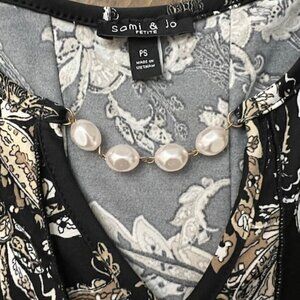Sami & Jo Blue Black Floral Panel A-Line Dress Short Sleeve Size PS NWOT