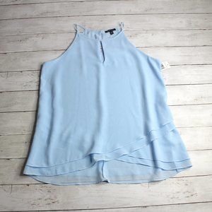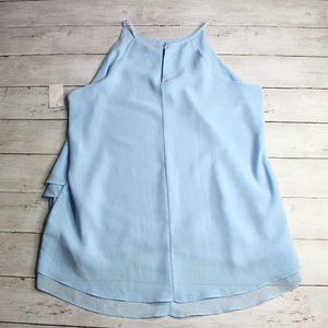 Sami & Jo Blue Sleeveless Chiffon Tunic Top Size M Sheer Layers Blouse K…