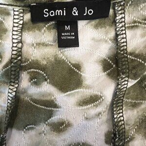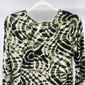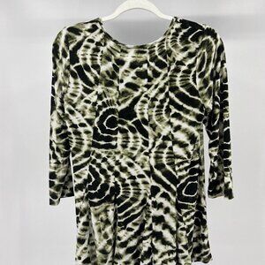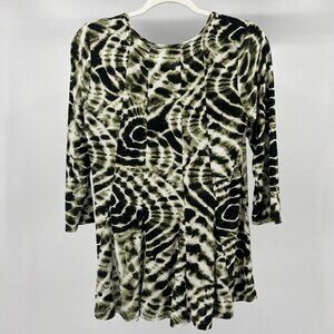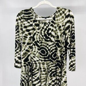 Sami & Jo Olive Green Tie Dye 3/4 Sleeve Knit Tunic Top Casual Comfy