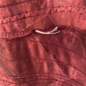 Preowned and in good condition. One small flaw on the shoulder but it's barely noticeable. There is a picture of it. Looks like a few stitches came out. Red purple whimsigoth long sleeve knee length dress with sequins.
