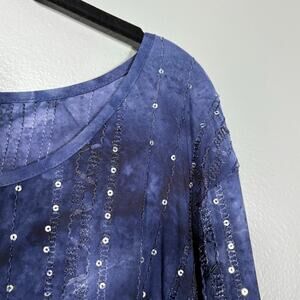 Sami & Jo Women's Blue Boho Sequin Tie Dye Twist Front Top - Size XL - Dopamine