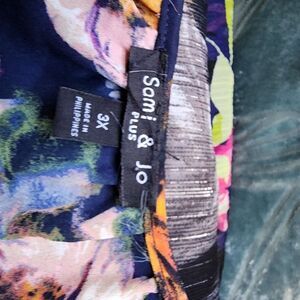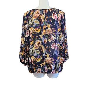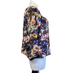 Sami & Jo navy blue sheer floral print tie neck long sleeve top 56" bust 32" long