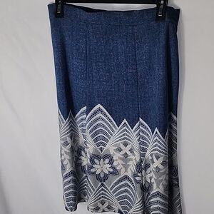 Textured floral faux denim a~line skirt size M in blue and white