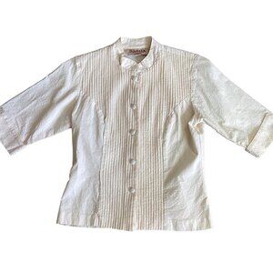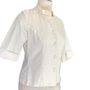 Samia Button Down Top Pintuck Pleat Half Sleeves Fitted Waist Sz S #34L