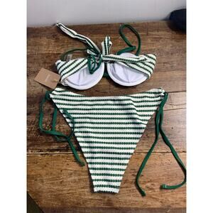 Samiol Green Striped Underwire Bikini Set NWT size large