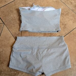 Stylish gray strapless top with matching shorts. Perfect for casual wear.