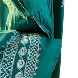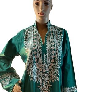Samir Women’s Size 1 Moroccan Kaftan Green White Embroidered Long Caftan Dress