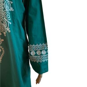 Step into summer with confidence and style in our Samir Womens Size 1 Moroccan Kaftan Green White Embroidered Long Caftan Dress.